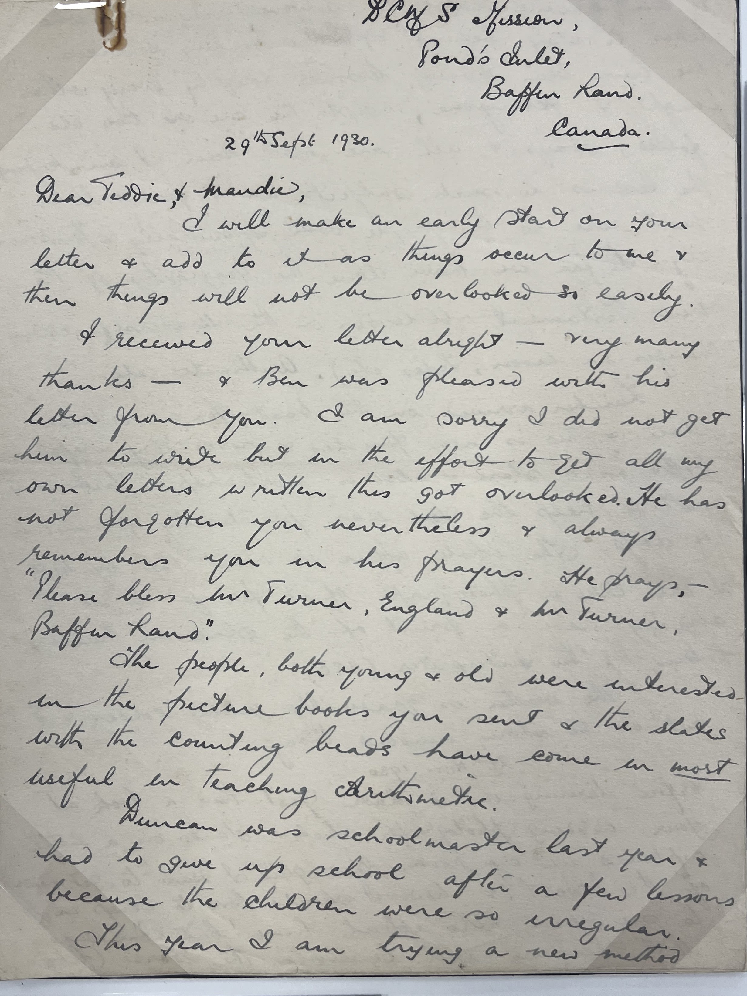 If the letter from the BCMS was correct in its details of Turner's journey, he likely would have called into Pangnirtung, possibly seeing his brother Arthur and many Christian Inuit people.
