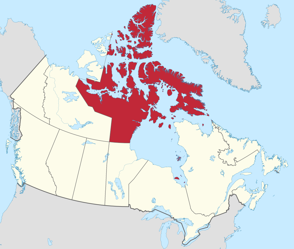 (Map of Canada with Nunavut coloured red via Wikimedia Commons)