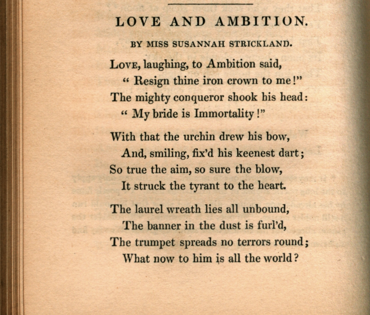 Susanna's Poem Love and Ambition, published in Forget Me Not in 1831