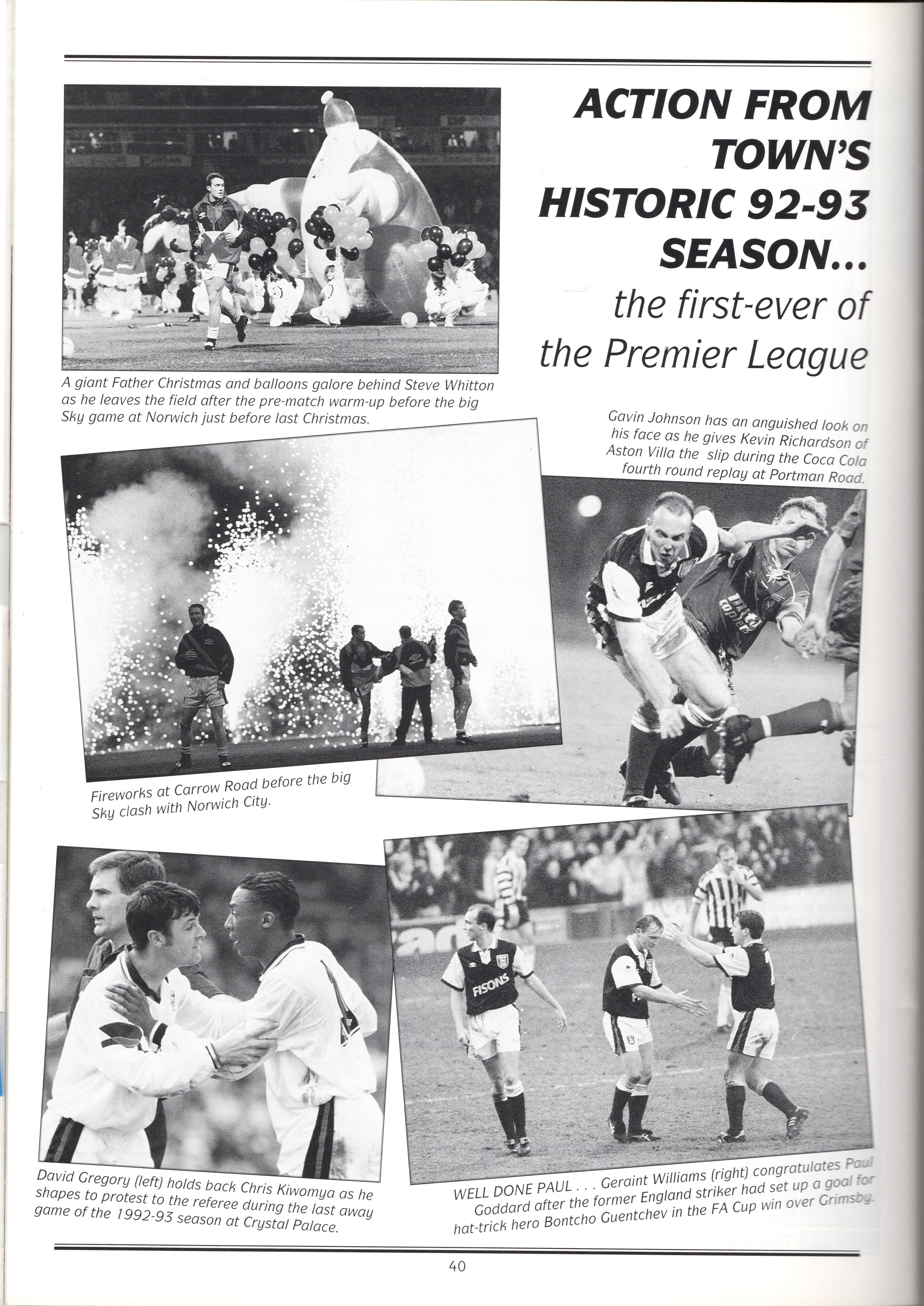 “Following Town’s relegation in 1986, under Robson’s former head coach Bobby Ferguson and a disappointing spell under replacement John Duncan, 1990 saw the appointment of John Lyall. Popular with players and fans alike, Lyall steered the club back to the Premier League as champions in 1991/92, following a 1-1 draw in the final away game at Oxford. Gavin Johnson scored the equaliser after an opener from Oxford’s Jim Magilton, who was later to become hugely influential at Ipswich under George Burley.”