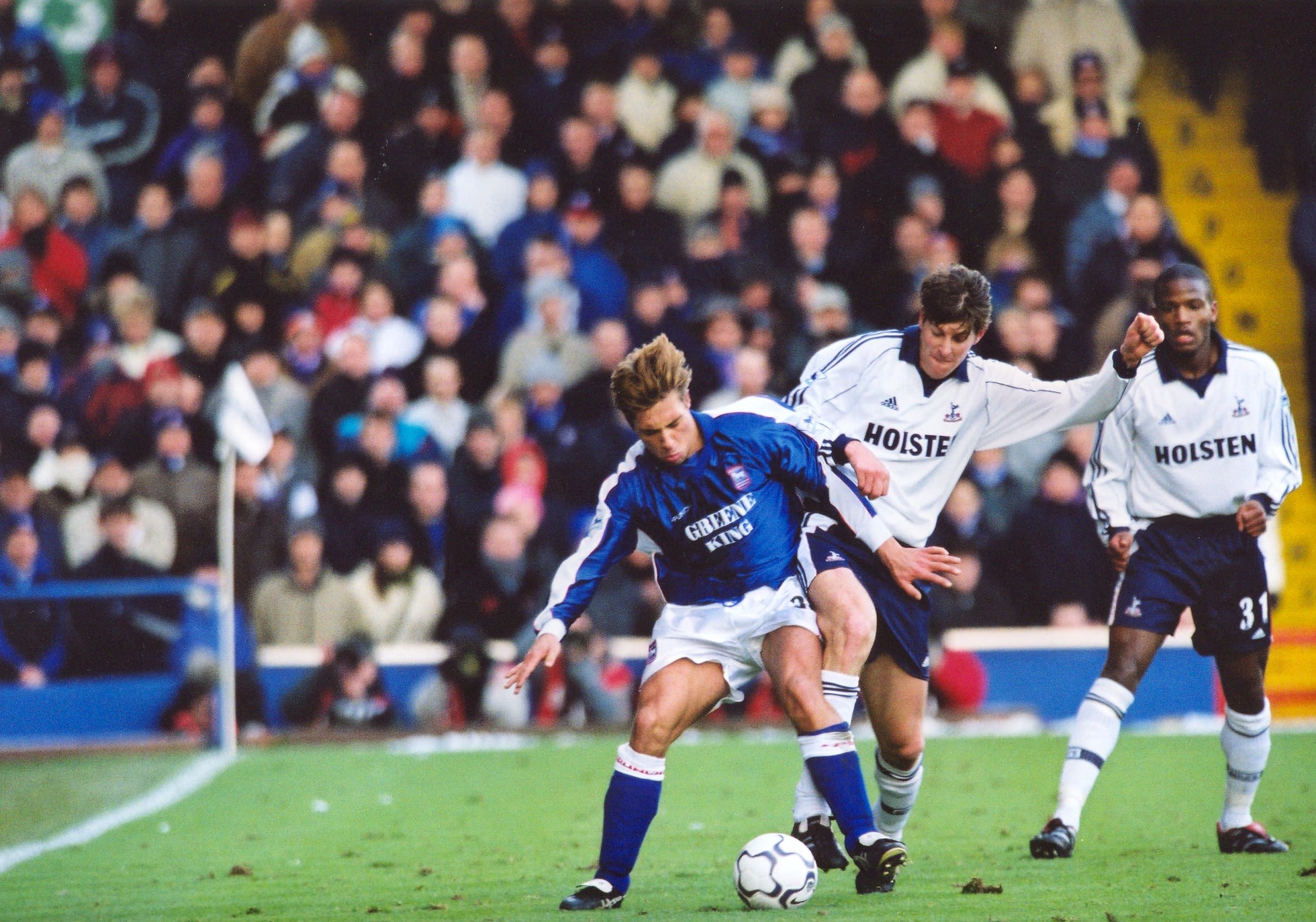 =“1997-2001 are probably the most memorable years. Three consecutive play-off failures preceded the enormous relief, joy, drama and excitement of the 2000 play-off semi-final, where we beat Bolton 5-3 after extra time at Portman Road. Nothing can match that game. It was followed by a great match at Wembley against Barnsley. To finish 5th in the Premier League the very next season, qualify for Europe and play at the San Siro – that was dreamland.”